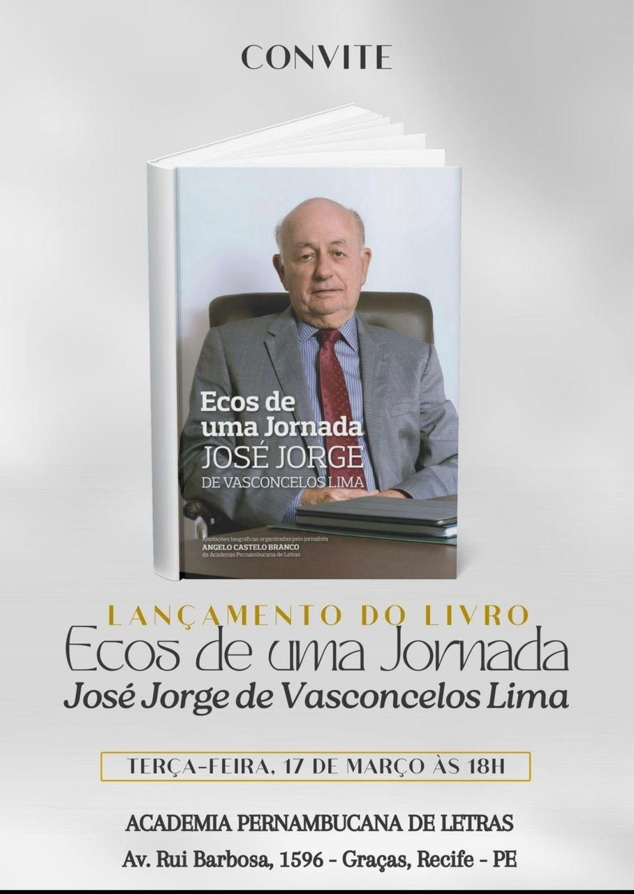 A biografia “Ecos de uma Jornada”, que narra a trajetória política e administrativa de José Jorge de Vasconcelos Lima, será lançada amanhã (17) na Academia Pernambucana de Letras, no Recife. A obra resgata momentos marcantes da vida pública do ex-senador e ex-ministro do Tribunal de Contas da União, destacando também sua relação com diversas cidades do interior de Pernambuco, entre elas Caruaru.