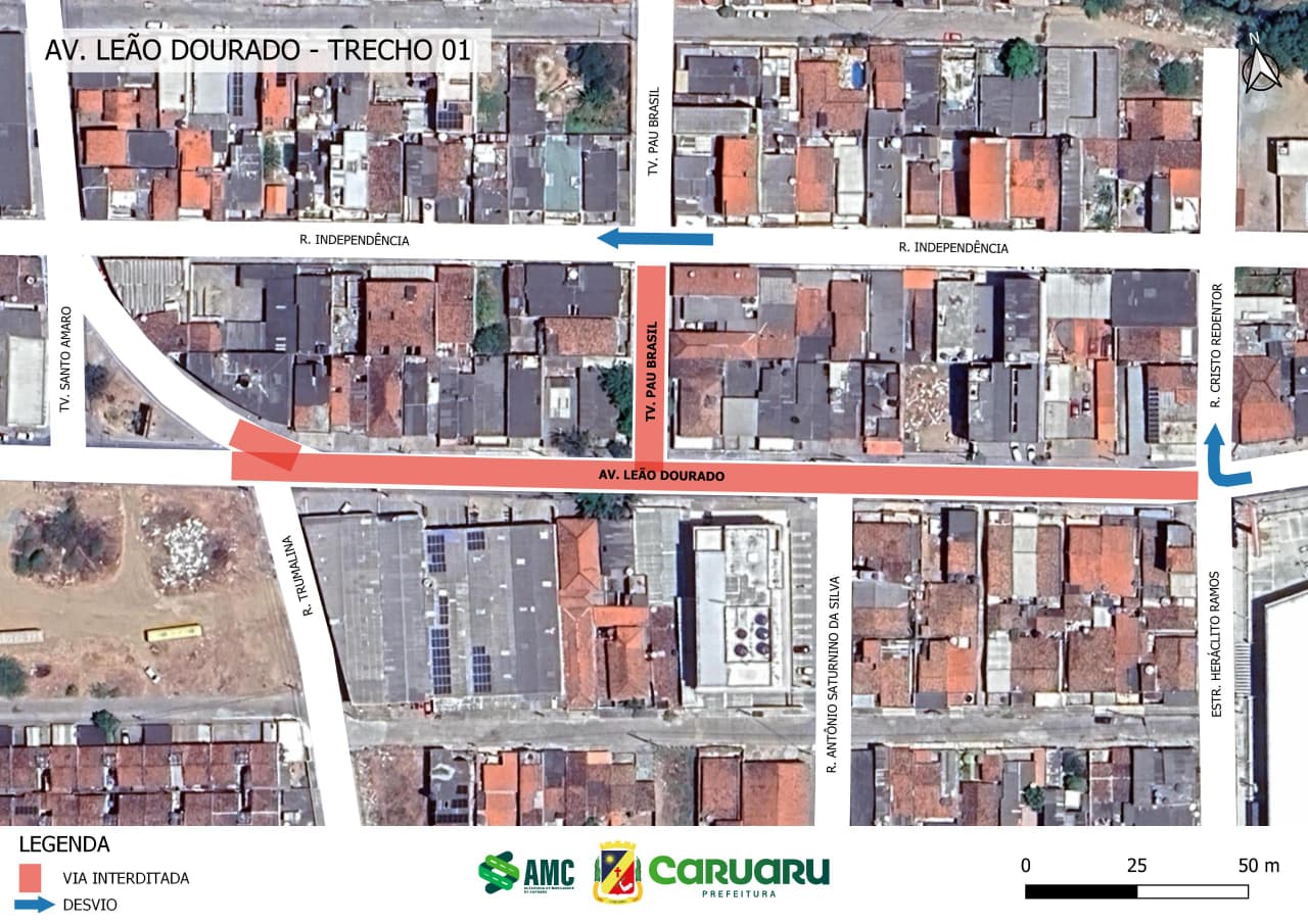 A Autarquia de Mobilidade de Caruaru (AMC) informa que, a partir da quinta-feira (26), a Avenida Leão Dourado terá trechos com interdições temporárias por conta de obras de esgotamento sanitário que serão realizadas por uma empresa privada.